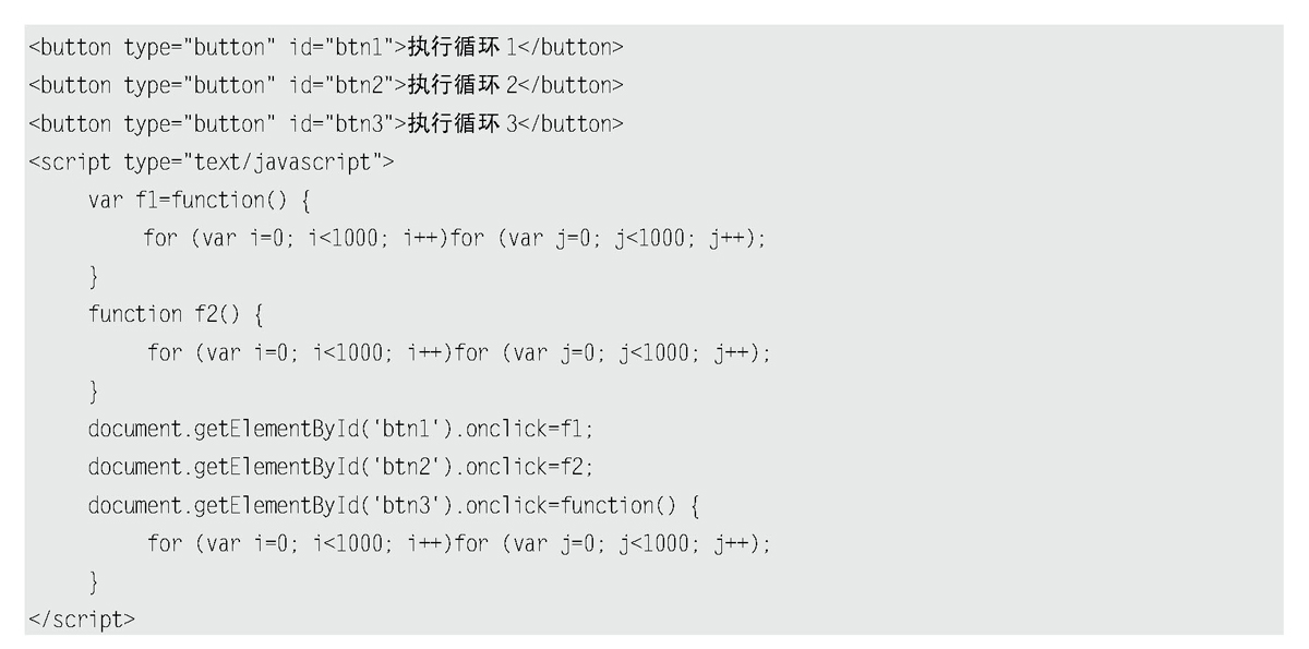 从上图中可以看到,Firebug中出现一行字,即“概况收集中。再次单击“概况”查看结果。”接着,单击“执行循环1”按钮1次,“执行循环2”按钮2次,“执行循环3”按钮3次,并再次单击“概况”菜单,即可看到图B-7所示的效果。