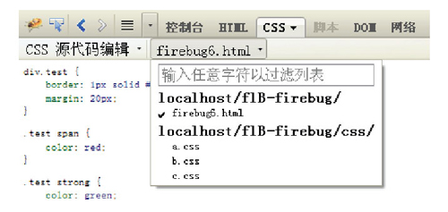 CSS面板特有的一个功能就是可以分别详细查看页面中内嵌以及动态导入的样式。例如firebug6.html,可以在Firebug中看到图B-20所示的效果。