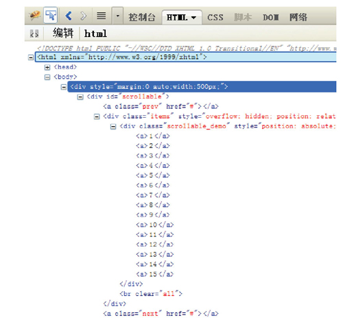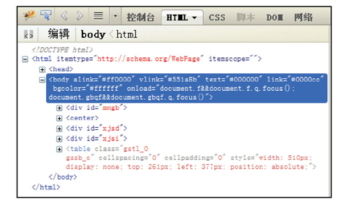 在Firebug中切换到HTML面板,可以看到图B-10所示的页面。