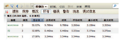 可以看到Firebug显示出了非常详细的报告。包括每个函数的函数名、调用次数,占用时间的百分比、占用时间、时间、平均时间、最小时间、最大时间以及所在文件的行数等信息。