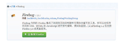 Firebug除了本身强大的功能之外,还有基于Firebug的插件,它们用于扩充Firebug的功能。比如Google公司开发Page Speed插件,开发人员可以使用它来评估他们网页的性能,并获得有关如何改进性能的建议。Yahoo公司开发的用于检测页面整体性能的YSlow和用于调试PHP的FirePHP。还有用于调试Cookie的Firecookie等。