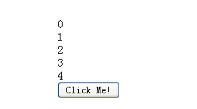 最后单击页面中的“Click Me!”按钮。可以发现,脚本在“arr==5”这个表达式为真时停下了,因此“5”以及之后的数字没有显示到页面中。图B-29和B-30是正常效果和设置条件断点后的效果的对比。