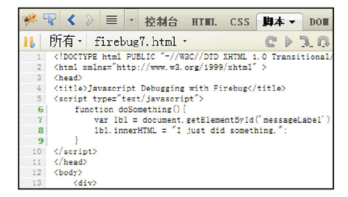 从图B-3中可以看出,Firebug总共包含6个面板,分别是控制台、HTML、CSS、脚本、DOM和网络。