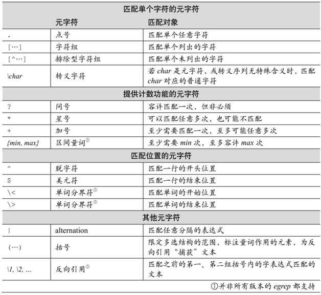 表1-3总结了我们在本章中见过的egrep的元字符。