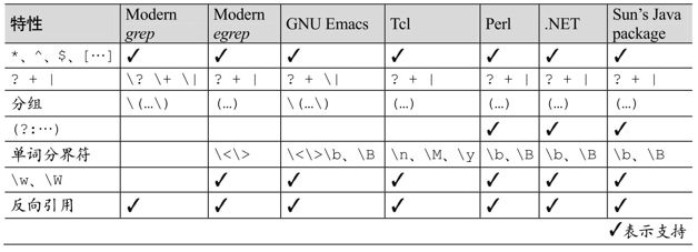 表3-1:POSIX正则表达式流派概览