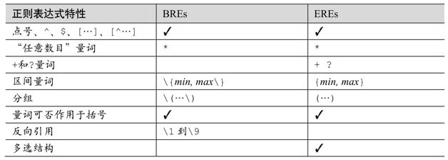 就在egrep演变的同时,其他程序,例如awk、lex和sed,也在按各自的脚步前进。通常,开发人员会把某个程序中自己喜欢的特性添加到其他程序中。有时候,结果并不尽如人意。例如,如果要在 grep 中增加对「+」的支持,就不能直接使用‘+’,因为长期来以来在 grep中‘+’都不是元字符,突然进行这种修改会让大家感到不适应。因为‘+’可能是 grep的用户在正常情况下不会输入的,把它作为“重现一次或多次”的元字符可能更合适。