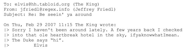 有意思的是,这段程序也可以用另一种方法,使用正则表达式来加入引用提示符: