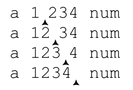 所以,如果用「[0-9]+」来匹配‘a·1234·num’,「[0-9]」遇到4之后的空格无法匹配,而此时加号能够回溯的位置对应了四个保存的状态: