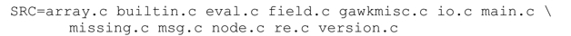 我选这个简单的例子是因为它很容易理解,但是我希望读者能够明白,这个问题在现实中很重要。举例来说,如果希望匹配连续多行文本,常见的情况是,一个逻辑行(logical line)可以分为许多现实的行,每一行以反斜线结尾,例如: