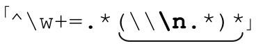 读者可能希望用「^w+=.*」来匹配这种“var=value”的数据,但是正则表达式无法识别连续的行(在这里我们假设点号无法匹配换行符)。为了匹配多行,读者可能需要在表达式最后添加「(\\n.*)*」,得到