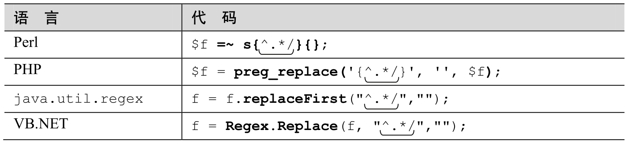 处理文件名和路径,例如 Unix 下的/usr/local/bin/Perl 或者 Windows 下的\Program Files\Yahoo!\Messenger,很适合用来讲解正则表达式的应用。因为“动手(using)”比“观摩(reading)”更有意思,我会同时用Perl、PHP(preg程序)、Java和VB.NET来讲解。如果你对其中的某些语言不感兴趣,不妨完全跳过那些代码——其中蕴含的思想才是最重要的。