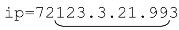 如果用「\d」替换「[0-9]」,就得到「^\d+\.\d+\.\d+\.\d+$」,这样可能更好看一些(注1),但是,这个表达式仍然会捕获一些并非IP地址的数据,例如‘1234.5678.9101112.131415’(IP地址的每个字段都在0-255以内)。那么,你可以强行规定每个字段必须包含三位数字,就是「^\d\d\d\.\d\d\d\.\d\d\d\.\d\d\d$」,但这样未免太不灵活(too specific)了。即使某个字段只有一位或者两位数字(例如 1.234.5.67),也应该匹配。如果流派支持区间量词{min,max},就可以这么写「^\d{1,3}\.\d{1,3}\.\d{1,3}\.\d{1,3}$」。如果不支持,则可以用「\d\d?\d?」或者「\d(\d\d?)?」。这两种方式略有不同,但都能匹配一到三个数字。