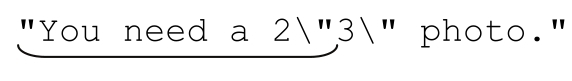首先来看一个真正体现回溯和效率的重要性的例子。在198页,我们用「"(\\.|[^\\"])*"」来匹配引号字符串,其中容许出现转义的双引号。这个表达式没有错,但如果我们使用NFA引擎,对每个字符都应用多选结构的效率就会很低。对字符串中每个“正常”(非转义、非引用)的字符来说,这个引擎需要测试「\\.」,遇到失败后回溯,最终由「[^\\"]」匹配。如果效率不容忽视,就应该做些改动来加快匹配速度。
