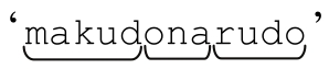 但是,对正则表达式的「([^\\"]+)*」来说,加号和星号二者分割(pvy up)字符串的可能性是成指数形式增长的。如果目标字符串是 makudonarudo,是星号会迭代12次,每一次迭代中「[^\\"]+」匹配一个字符(就像这样