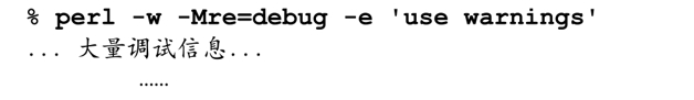 另一个办法是,如果 Perl 二进制代码在编译时启用了调试支持,可以使用命令行参数-Dr来表示-Mre=debug。
