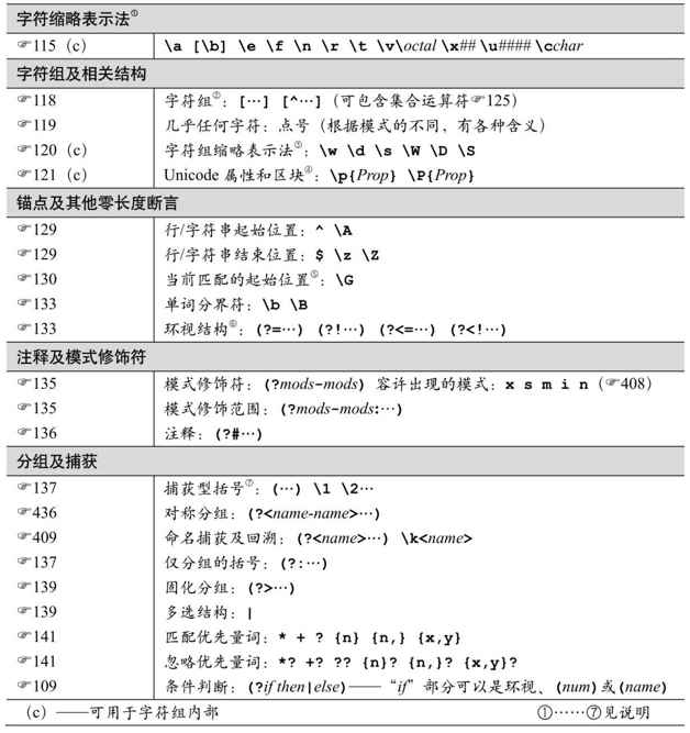 其中包括了「w」之类的“纯”转义。它们可以直接用到 VB.NET 的字符串文字("w")和C#的verbatim字符串(@"w")中。C++的语言没有提供针对正则表达式的字符串文字,所以正则表达式中的反斜线在字符串文本中需要双写("\\w")。请参考“作为正则表达式的字符串”(☞101)。