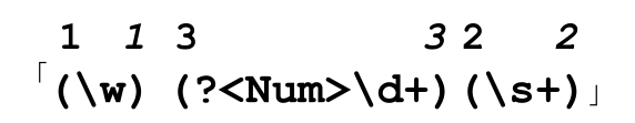 本例中,我们可以用Groups("Num")或Groups(3)来访问「d+」匹配的文本。这两个名字对应同一个分组。
