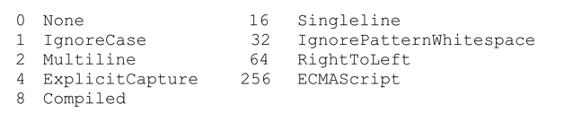 在创建Regex对象时,可以使用下面的选项: