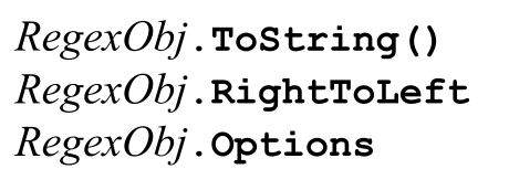 这几个方法容许用户查询 Regex 对象本身(而不是将此对象应用到字符串上)的信息。ToString()方法返回正则表达式构造函数接收的字符串。RightToLeft 属性返回一个Boolean 值,表明它是否启用了 RegexOptions.RightToLeft选项。Options属性返回与此正则表达式相关的RegexOptions。下面说明了各个选项的值,把对应选项的值相加,就得到返回结果。