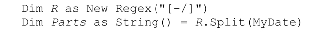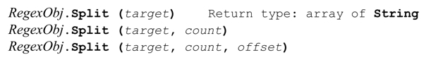 Split 方法将目标正则表达式应用于目标字符串,返回由各匹配分隔的字符串数组。如下面这个例子所示: