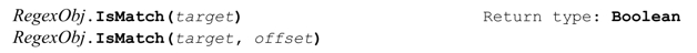 IsMatch方法把目标正则表达式应用到目标字符串,返回一个 Boolean值,表示匹配尝试是否成功,这里有个例子: