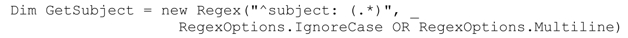 Dim GetSubject=new Regex("^subject:(.*)",RegexOptions.IgnoreCase)