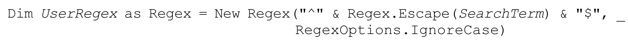 例如,如果用户的输入保存在字符串SearchTerm中,我们可以这样构建正则表达式: