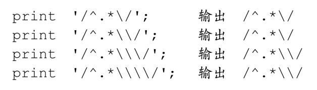 第5章第190页有一个例子,「^.*\\」作为pattern字符串时应该写成‘/^.*\\/’,使用3个反斜线。照此类推,我找到这几个例子: