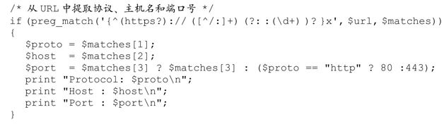 请注意,数组中不包括编号为3和名称为‘port’的入口(entry),因为这一组捕获型括号没有参与到最终匹配中,而且处于最后(因此会被忽略☞450)。