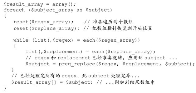 这样说来,在把任意文本转换为 PHP 正则表达式的问题上,preg_quote 并不是完善的解决办法。它只解决了“文本到正则表达式”的问题,而没有解决“正则表达式到pattern参数”的问题,任何preg函数都需要这一步。下一节给出了解决办法。