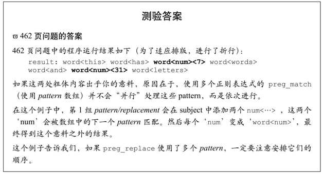 结尾的未参与匹配的捕获型括号不会影响结果数组。也就是说,如果一组捕获型括号没有参与最终匹配(参见450页),可能会也可能不会在结果数组中添加空字符串。如果编号更靠后的捕获型括号参与了最终匹配,就会增加,否则就不会。请注意,如果使用了PREG_SPLIT_NO_EMTPY 标志位,结果会有变化,因为空字符串肯定会被抛弃。