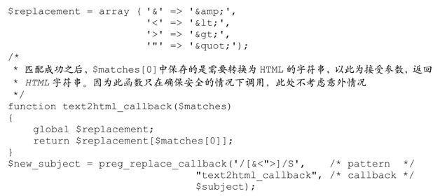 为完整起见,下面我给出使用匿名函数的办法(使用PHP内建的create_function函数)。这段程序产生的$replacement变量与上面一样。函数体也相同,只是此时函数没有名字,只能在preg_replace_callback中使用: