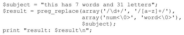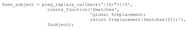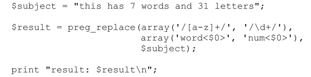 下面这个例子用preg_replace_callback和辅助函数重写了第460页的程序。callback参数是一个字符串,包含辅助函数的名字: