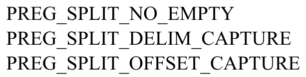 preg_split中可以使用的3个标志位都会影响函数的功能。它们可以单独使用,也可以用二元运算符“or”连接(参见第456页的例子)。