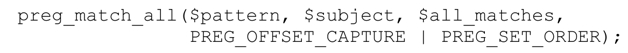 preg_match_all(pattern,subject,matches [,flags [,offset]])