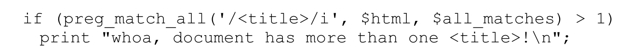 preg_match_all要求必须出现第3个参数(也就是用来收集所有成功的匹配信息的变量)。所以,这个例子中虽然没有用到$all_matches,但仍然必须设置这个变量。