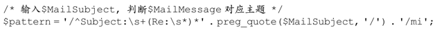如果$pattern在$subject中能找到匹配,就会返回true。下面有几个简单的例子: