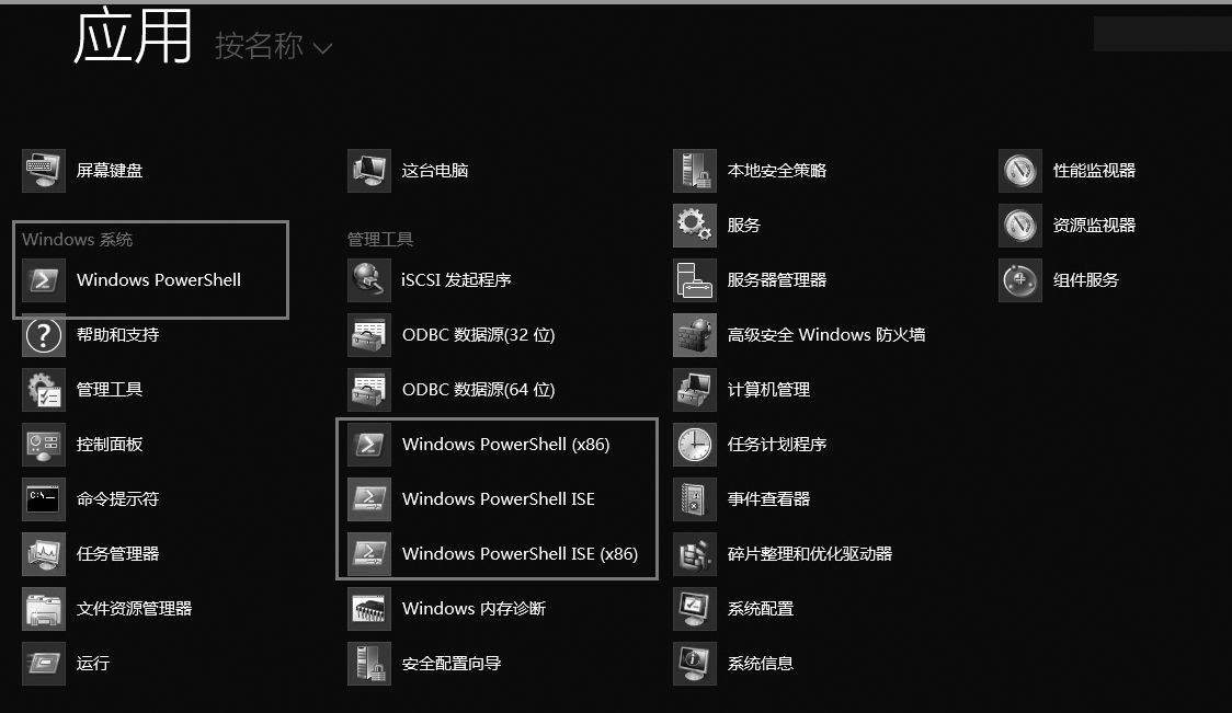 换句话说,32位操作系统仅有32位的PowerShell应用程序,而64位操作系统可以有32位和64位两个版本的PowerShell应用程序,其中32位应用程序在图标名中会包含“x86”字样。需要注意的是,有些扩展程序只支持32位环境,不支持64位。微软现在已经把全部精力放到64位系统中,而32位仅用于向后兼容。