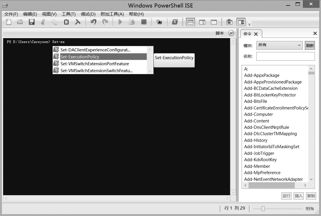 - Windows PowerShell ISE——64位系统上的64位图形化控制台和32位系统上的32位图形化控制台。