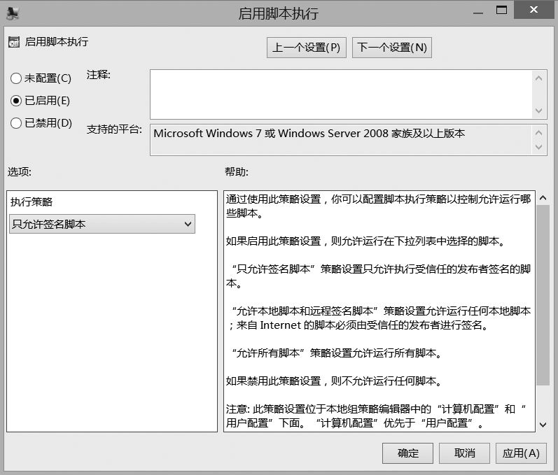图17.2 在组策略对象中修改Windows PowerShell的执行策略