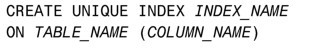 唯一索引用于改善性能和保证数据完整性。唯一索引不允许表里具有重复值,除此之外,它与普通索引的功能一样。其语法如下所示:
