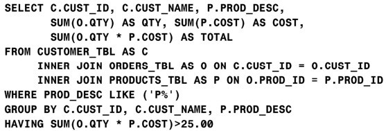 在这个例子中,我们需要找到对某个产品的总计消费超过 25 元的客户。这个查询很简单,而且我们的示例数据库也很小,但HAVING子句的使用仍然增加了额外的工作,尤其当HAVING子句包含了复杂的逻辑而又应用于大量数据的时候。在可能的情况下,尽量不要在SQL语句中使用HAVING子句,如果需要使用,则最好尽可能地使其中的限制条件简单化。