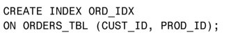在这个范例里,我们基于表ORDERS_TBL里的两个字段(CUST_ID和PROD_ID)创建组合索引。这是因为我们认为这两个字段经常会在查询的WHERE子句里联合使用。