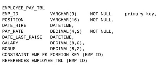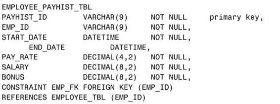 2.添加一个名为EMPLOYEE_PAYHIST_TBL的表,用于存放大量的支付历史数据。使用下面的表来编写SQL语句,解决后续的问题。