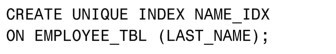如果想对表EMPLOYEE_TBL里雇员的姓创建唯一索引,相应的命令如下所示: