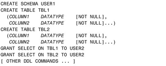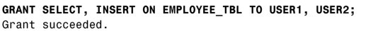 这个命令里添加了关键字 AUTHORIZATION,它是在 Oracle 数据库里执行的。从这个范例以及前面的很多范例中都可以看出,不同实现的命令语法有所不同。