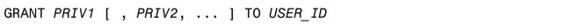 下面是给用户账户分配权限的语法: