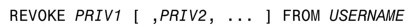 REVOKE命令的语法如下所示: