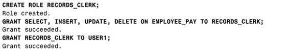 类似地,如果APP01从RECORDS_CLERK角色撤销了对表EMPLOYEE_PAY的SELECT权限,任何被指派了RECORD_CLERK的用户或角色就不再对这个表有SELECT权限了。
