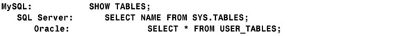 2.在数据库提示符下,根据你所使用的数据库实例,输入相应命令来列出数据库实现中所默认的表:
